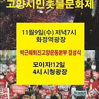 고양시에서는 11월 9일(수) 저녁 6시반, 화정역 광장에서 '고양시민 촛불 문화제'가 예정되어 있다. 때문에 나흘 전 주말에 열리는 5일 행신동 잔치는 고양시의 촛불 행렬에 적지 않은 영향을 줄 것으로 기대된다.